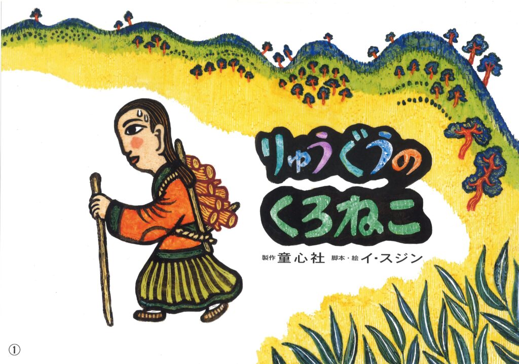 韓国の昔話をベースにした作品。日本語で書かれた脚本は、しっかりとした構成でセリフ運びは豊かで語りやすい。韓国画を学んだ後、イラストレーションを学び直し、紙芝居絵画の表現を独特に創っている。大胆な構図が豊かな色彩にマッチして斬新である。要所の場面では、コントラストを効かせた印象的なシーンを生み出している。